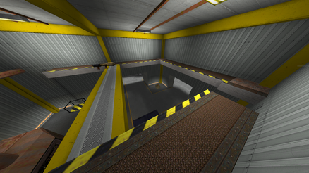 The quakeworld version of Nuke is close to a 1:1 scale from the original with some obvious changes to the outside area (smaller). The inside areas are pretty much 1:1. This map also gives a new and neat feature with some see-through-glasses. Nuke got an upper level wich contains of an outside area and inside areas. The lower level is only inside; the two access points to the lower level you access from each side, or you spawn there.